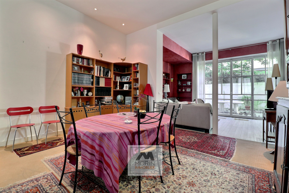 Vous découvrirez une vaste pièce de vie traversante de 58 m², comprenant un espace salon et une salle à manger. L’ensemble s’ouvre directement sur un jardin de 36 m² avec terrasse, sans vis-à-vis, offrant un espace extérieur rare en centre-ville et parfaitement au calme.